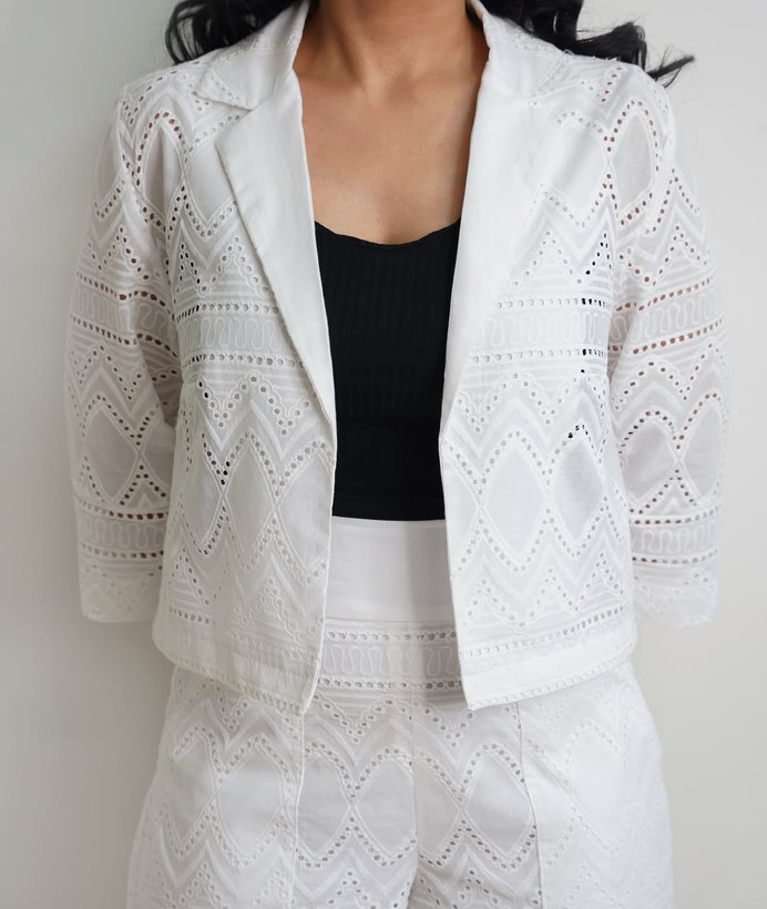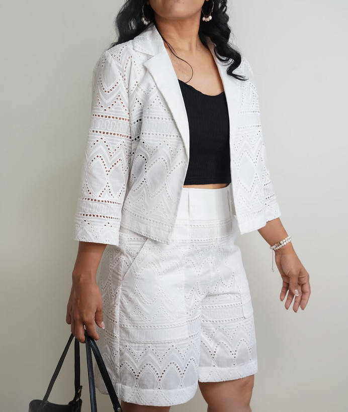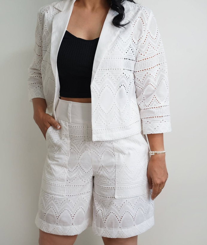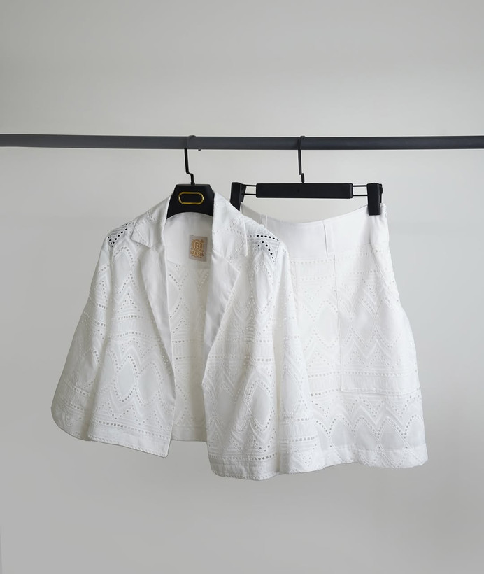 کت و شلوارک خامهدوزی سفید سایز ۳۶ تا ۴۰