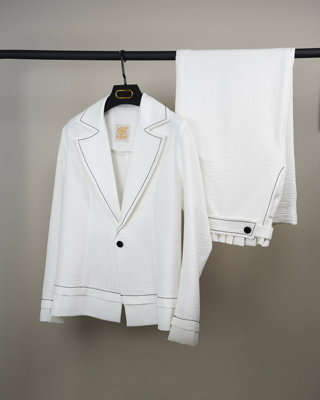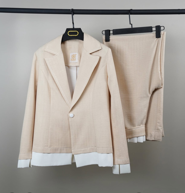 کت و شلوار خنک، سبک و چشمنواز که میتونی هم توی قرارای دوستانه بپوشیش، هم توی محیطهای نیمهرسمی جنس: شانتون با کیفیت بالا. طراحی و تولید از گروه پارسیس مد